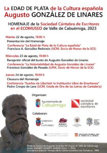 La Edad de Plata de la Cultura Española: Augusto González de Linares: Homenaje de la Sociedad Cántabra de Escritores en el Ecomuseo del valle de Cabuérniga.